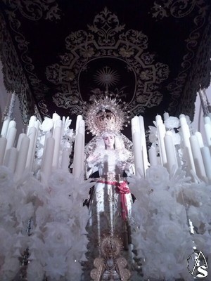 La Virgen se encuentra para la ocasión perfectamente ataviada por su vestidor, José Antonio Grande de León, luciendo saya blanca bordada en oro por el taller de Bordados Salteras, siendo estrenada en la procesión de gloria de septiembre de 2011. El recorrido se encuentra en su totalidad adornado con arcos, cúpulas, gallardetes y guirnaldas.