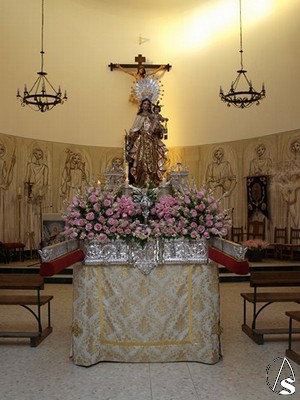 La Virgen del Carmen, a la que se le tiene mucha devoción y fe en el poblado procede de los Talleres de Olot de Gerona y llegó en 1951.