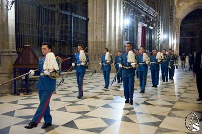 El acto consiste en la interpretación desde el Campanario de la Giralda de los toques denominados "Lágrimas de San Pedro"; los ministriles lucen para ello el antiguo traje de gran gala del Regimiento de Caballería Sagunto VII, encargados en realizar la tradición antaño.