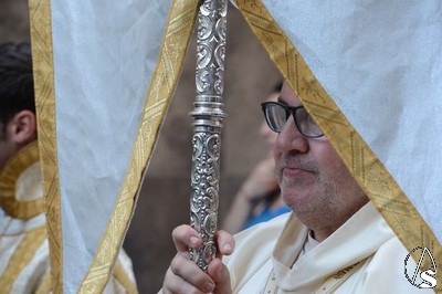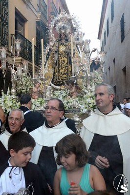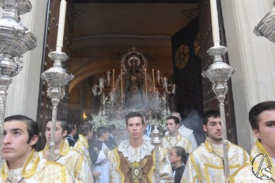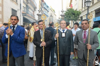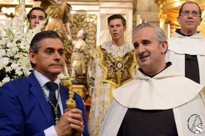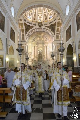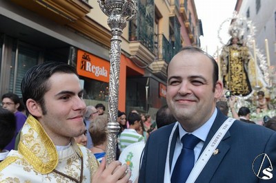 Tras el cuerpo de acólitos estuvieron los padres carmelitas que regentan el templo del Santo Ángel con el actual prior, Fco. Javier Jaén Toscano, a la cabeza. Igualmente, y llegado desde Córdoba, no se quiso perder esta importante cita el anterior prior, Fray Juan Dobado, que estuvo saludando a numerosos feligreses que lo aprecian por su buen hacer al frente de la Casa de la calle Rioja, en los años que estuvo.