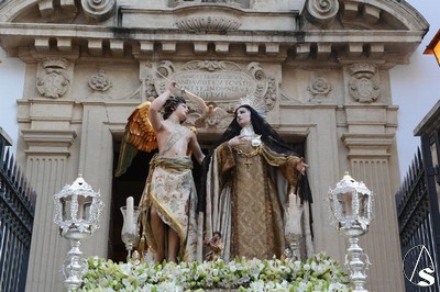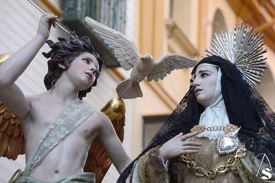 El primer paso representa la Transverberación de Santa Teresa, obra del escultor cordobés Romero Zafra, igual que el Ángel, y en el segundo figura la Stma. Virgen del Carmen.