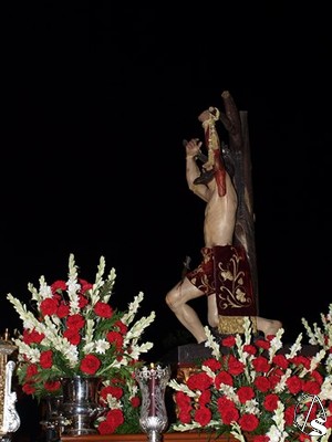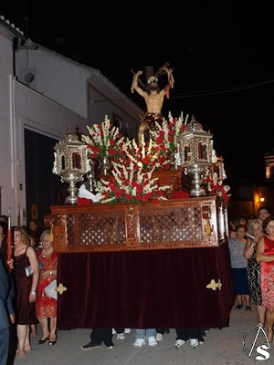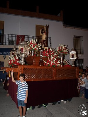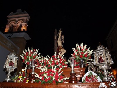 Procesiona sobre sencillo paso de madera tallada, alumbrada por cuatro faroles de plata en las esquinas que pertenecen a la Hermandad del Nazareno. El paso estuvo exornado con nardos y claveles rojos. Tras el paso y en el terreno musical acompañó la Banda Músical Herrereña.