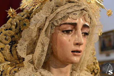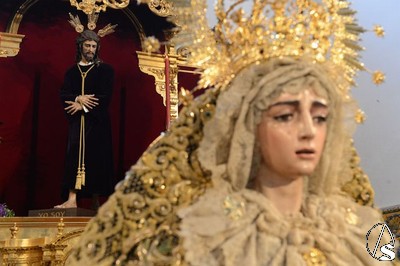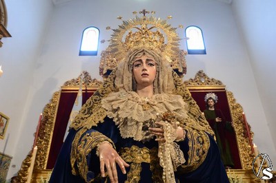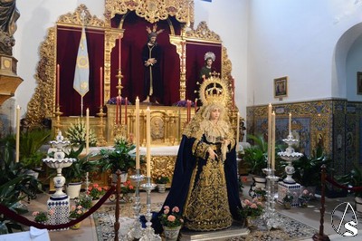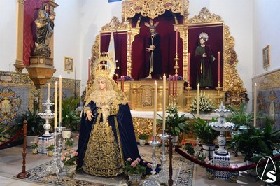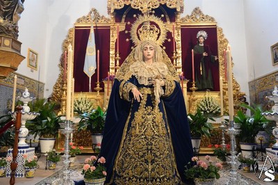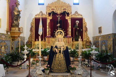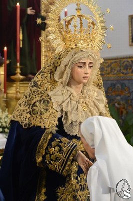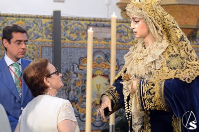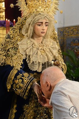 A lo largo de todo el día, la imagen se halló expuesta en solemne besamano, siendo numerosos los fieles que acudieron a lo largo de toda la jornada para rendirle pleitesía y devoción. Como curiosidad, la Virgen se encontraba dispuesta en el altar de culto con dos fuentes de cerámica trianera evocando la simboligía de que Santa María es, precisamente, Fuente de la Salud, la misma fuente que aparece reflejada en la gloria de su techo de palio o en uno de los broches que habitualmente luce en el pecherín.