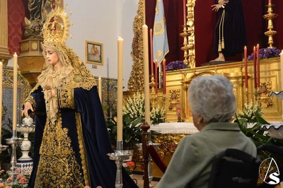 Posteriormente, la diputación de caridad acudió al asilo de la Fundación Carrere para recoger a los ancianos y llevarlos al templo parroquial para visitar a la dolorosa de Ortega Brú. Emotivos instantes se vivieron en la iglesia en torno a las 11 de la mañana con aquellas personas de edad avanzada que pedían suplicantes a la Madre de Dios poder gozar de la Salud que Ella lleva en su bendito nombre.
