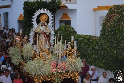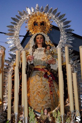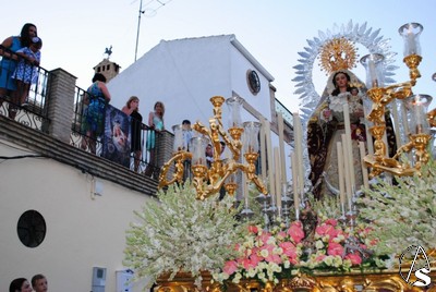 Este año la imagen de la Virgen ha procesionado en el paso de madera tallada y dorada que va alternando cada varios años con el de plata.