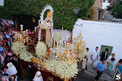 Como cada ultimo domingo de agosto la Santísima Virgen de Gracia bajó de lo más alto del pueblo para perfumarlo con ese olor tan característico de las más de dos mil varas de nardos que sus fieles le regalaron por la mañana.