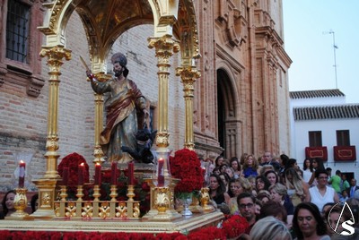 El pasado sábado tuvo lugar la salida procesional desde la Parroquia de Consolación, la conocida como Catedral del Aljarafe del mencionado San Bartolomé y Ntra. Sra. del Consuelo, que desde tiempo inmemorial acompaña al Santo en sus cultos.