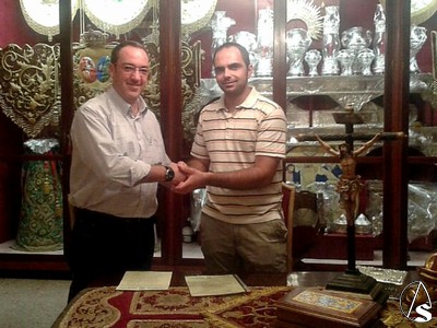 En la tarde ayer 28 de Septiembre, el Hermano Mayor de esta Corporación del Miércoles Santo D. Manuel Javier Velázquez y D. Patricio Hidalgo, Director de la formación musical, rubricaron el acuerdo por el cual, la Banda Varón de Dolores, acompañará a la Cruz Parroquial abriendo la Procesión.