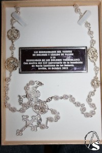 Al final de dicho acto, el Delegado del Consejo General de Hermandades y Cofradías, José Manuel Rodríguez hizo entrega de un bello rosario con los escudos de las Hermandades del Viernes de Dolores y Sábado de Pasión que de este modo homenajean a la Titular.