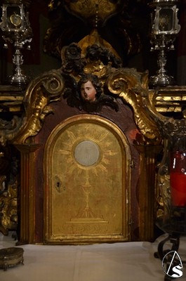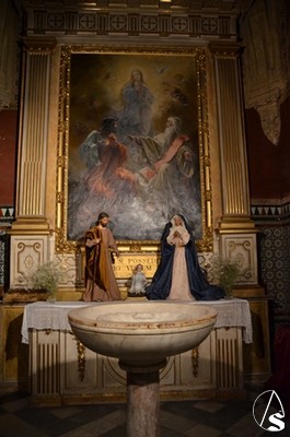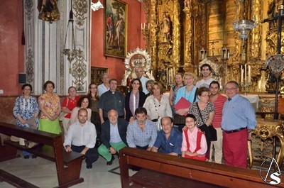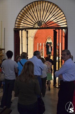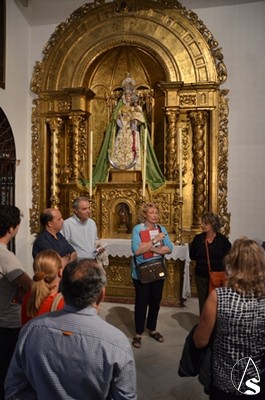 A las 18h accedimos a la parroquia de San Andrés Apóstol, donde nos esperaba José Cornelio, hermano mayor de la Hermandad de Nuestra Señora de Araceli. José Cornelio nos habló de la hermandad de sus orígenes hasta nuestros días. La talla de la Virgen es obra de Castillo Lastrucci y José Cornelio nos comentó que cuando el imaginero entregó la talla a la hermandad este no quiso cobrar nada por la hechura ya que su madre tenía el mismo nombre que la advocación de la Virgen.