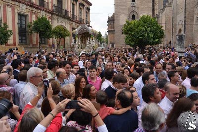 Galería. El Milagroso Simpecado del Rocío de Triana regresó a su barrio tras los actos del Bicentenario. J. Corchero
