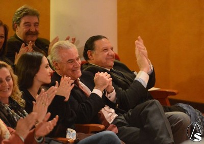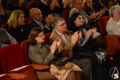 En la presidencia del acto, junto al pregonero, estuvieron el presidente de los belenistas, Juan José Morillas, el director de Fiestas Mayores, Rafael Rivas y el presentador del pregonero, Luis Miguel Martín Rubio, que hizo una presentación muy simpática y que hizo reír en varias ocasiones a los presentes.