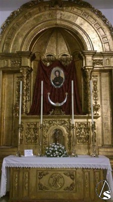 Arte Sacro. Al estar el altar de la Virgen de Araceli sin ninguna imagen, ya que la imagen de la titular se encuentra en el Belén Parroquial presidiendo el Altar Mayor de la Iglesia de San Andrés y con mediación del Vicario Parroquial se ha propuesto realizar el siguiente montaje:La imagen original de la pintura, es una pintura sobre tabla, de procedencia bizantina, mostrando una actitud de bendecir con la mano derecha y sobre el pecho la izquierda, vistiendo un manto azul tachonado de cruces y estrellas y una corona y halo en la cabeza.