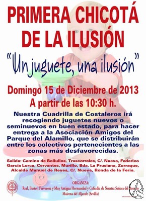 Arte Sacro. La Hermandad de Nuestra Señora del Rosario de Mairena del Aljarafe organiza la 1ª Chicotá de la Ilusión que tendrá lugar el domingo 15 de diciembre a partir de las 10:30 horas.