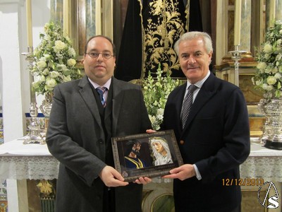 El Hermano Mayor de Medinaceli entrega un cuadro con los Titulares de la Hermandad portorrealeña al Sr. Francisco Berjano Arenado, Hermano Mayor de la Vera Cruz de Sevilla.