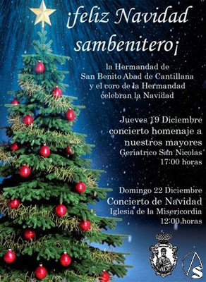Arte Sacro. Hoy, domingo 22 de diciembre el coro de la Hermandad de San Benito Abad de Cantillana en colaboración con la Fervorosa Hermandad del Glorioso Padre y Patriarca San Benito Abad de Cantillana celebran el tradicional Concierto de Navidad en la Iglesia de la Misericodia de Cantillana, sede canonica de la Hermandad sambenitera, a las 12 horas, tras la santa misa de los domingos.
