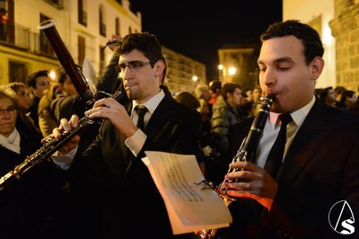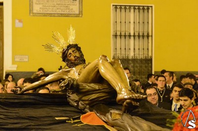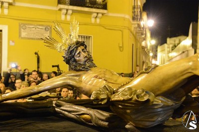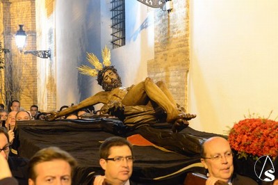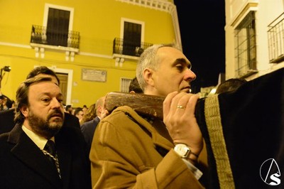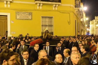 Las andas fueron mandadas por la familia Ariza, capataces de la hermandad del Domingo de Ramos. Una amplia representación de la agrupación musical Santa María Magdalena de Arahal estuvo presente para portar las parihuelas que llevaba el Señor de la Buena Muerte.