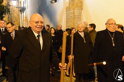 Un buen número de hermanos portando cirio acompañó durante todo el recorrido en el cortejo. En la presidencia, que portaba igualmente cirios, estuvieron junto al hermano mayor de la Hiniesta , el delegado del Domingo de Ramos, Fco. Velez, la delegada de Sacramentales y hermana de la corporación, Milagros Ciudad, y los hermanos mayores de las hermandades de la Resurrección y de los Panaderos.