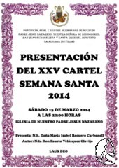 Sebas Gallardo. La Pontificia, Real e Ilustre Hermandad de Nuestro Padre Jesús Nazareno, Nuestra Señora de los Dolores, San Juan Evangelista y Santa Cruz del Convento de La Algaba celebra esta tarde a las 20:00 h el acto de la presentación del XXV cartel de semana santa obra de Fausto Velázquez Clavijo en la Iglesia de Nuestro Padre Jesús Nazareno, presenta el acto María Isabel Recuero Carbonell.