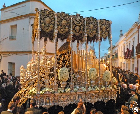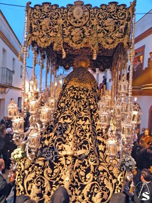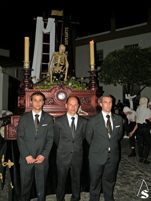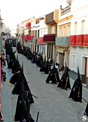Antonio Rendón. La Hermandad de la Soledad de Alcalá del Río revivió con sus cortejos fúnebres la estampa añeja y enlutada de una devoción con más de 500 años a sus espaldas mostradas con solemnidad y seriedad por los pasos de Ntra. Sra. de los Dolores en su Soledad Coronada, Santo Entierro de Cristo de la Misericordia y la alegoría del Triunfo de la Santa Cruz sobre el pecado y la muerte (La canina)