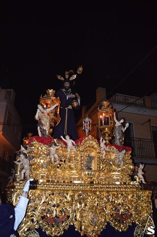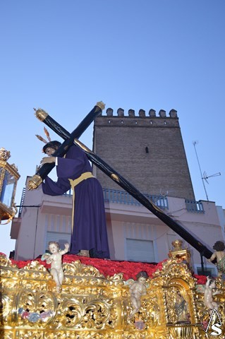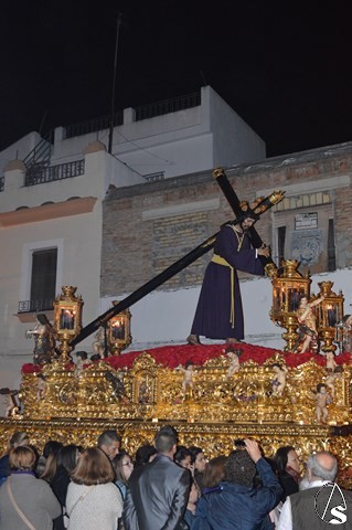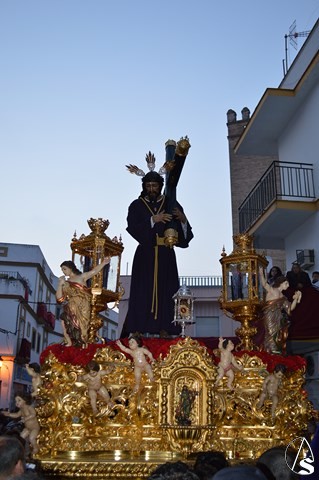 Manuel Pinto Montero. La venerada imagen de Jesús Nazareno de La Algaba procesionó por su pueblo la madrugá del Viernes Santo acompañado por muchísimos devotos que ante Él y tras Él caminan a su paso. Nuestro Padre Jesús Nazareno es una talla de autor desconocido aunque atribuida a la escuela de la Roldana en el siglo XVII.