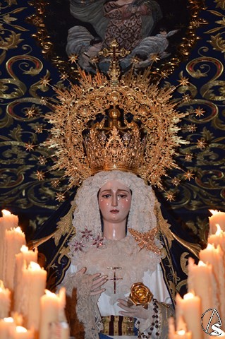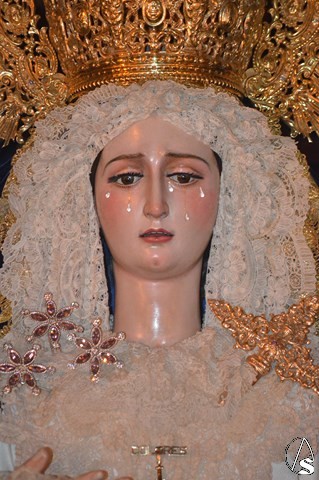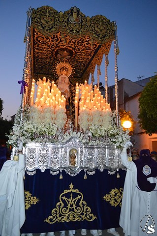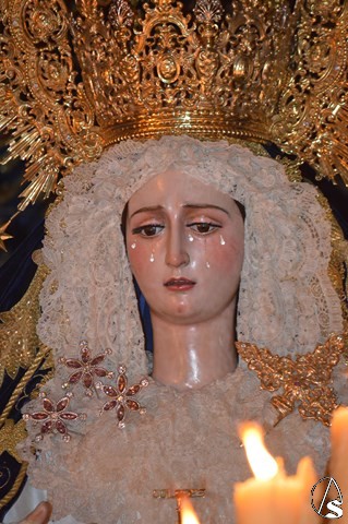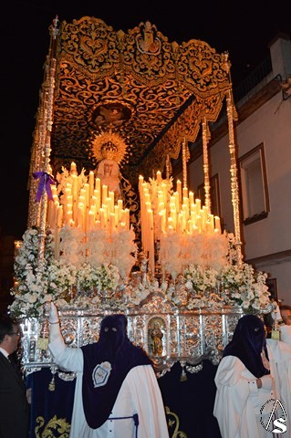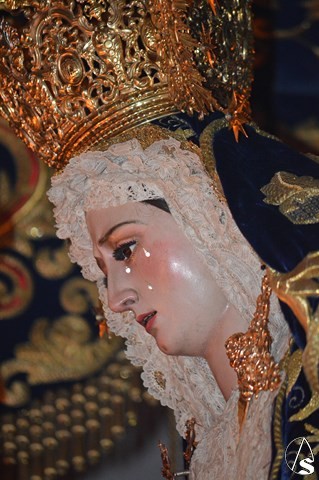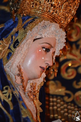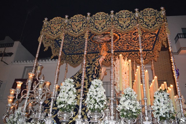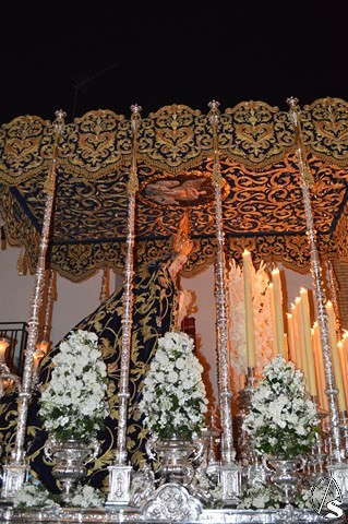 Bajo palio procesiona la bellísima imagen de Nuestra Señora de los Dolores, talla atribuida a Juan de Astorga.
