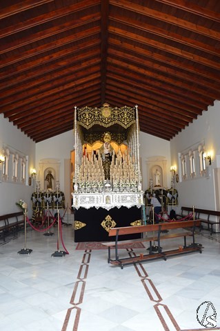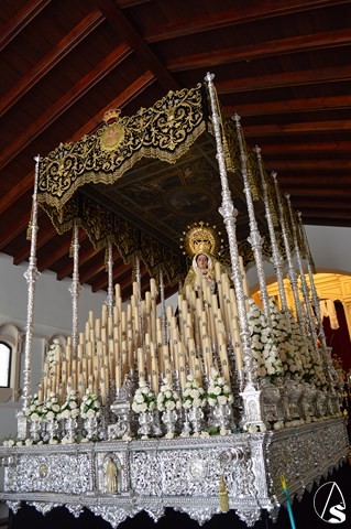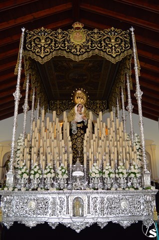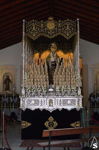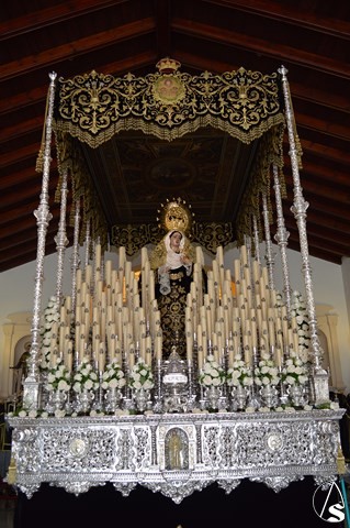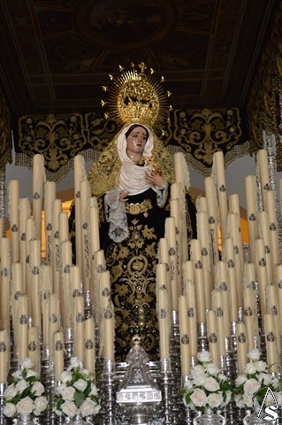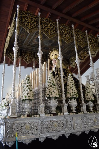Manuel Pinto Montero. La Semana Santa de Sanlúcar la Mayor se cierra el Sábado Santo con la Hermandad de la Soledad. El único paso de esta Hermandad cobija bajo palio a Nuestra Señora de la Soeldad, imagen del siglo XVII, atribuida a Luisa Roldán.