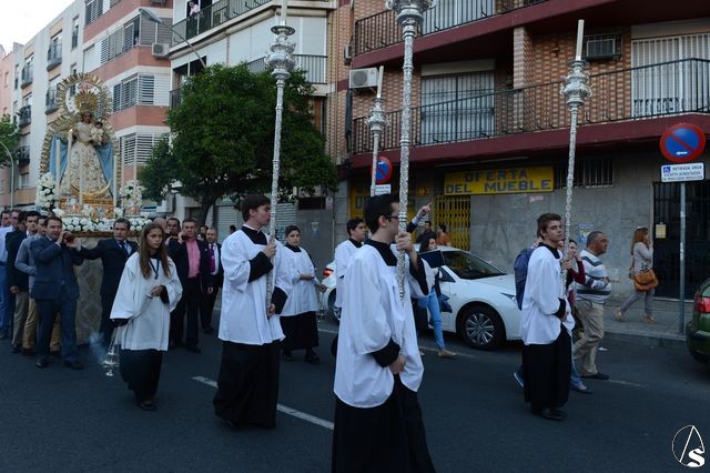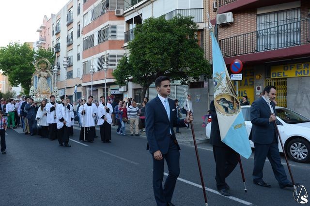Daniel García Acevedo. El Colegio la Salle Felipe Benito, de la barriada de la Salle , efectuó ayer sábado, 26 de abril, el rezo público del santo rosario con la bendita imagen de Madre de Dios del Dulce Nombre, por las calles de la feligresía.