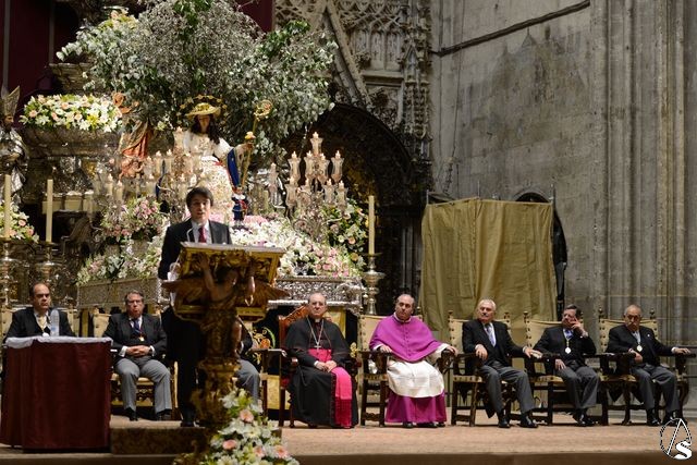 Tras hacer un repaso a las advocaciones marianas hispalenses, Gabriel presenta a la Virgen nada más y nada menos que a Fray Isidoro de Sevilla, cuya visión de la Madre como Pastora Divina, le hizo “crear el mayor destello que unos ojos hayan visto”.