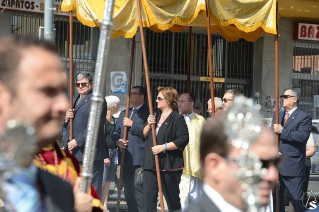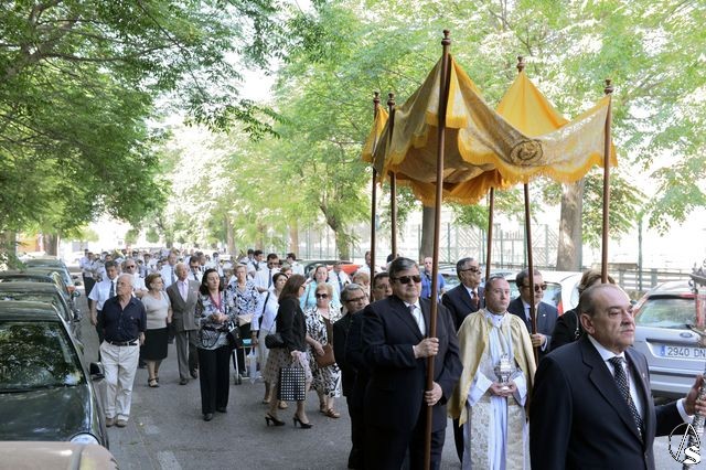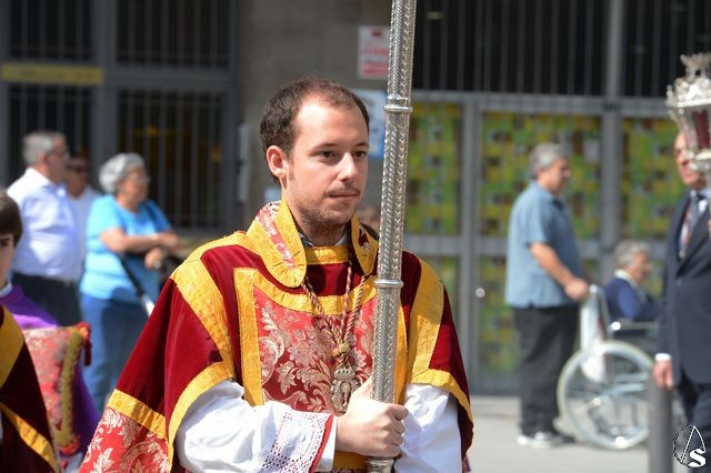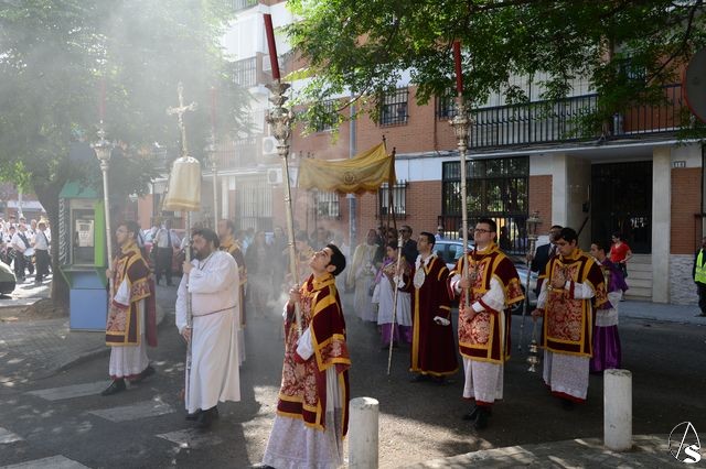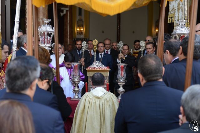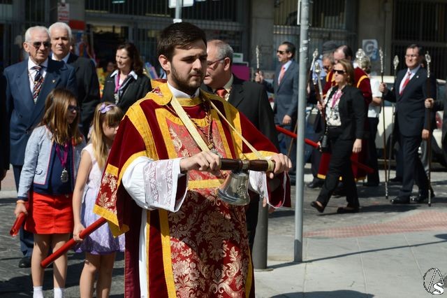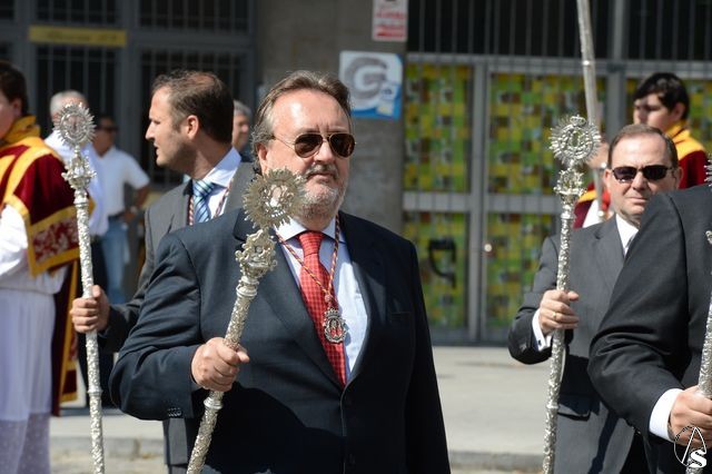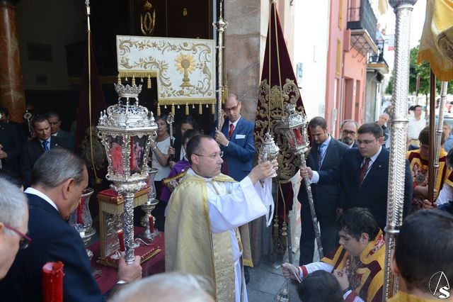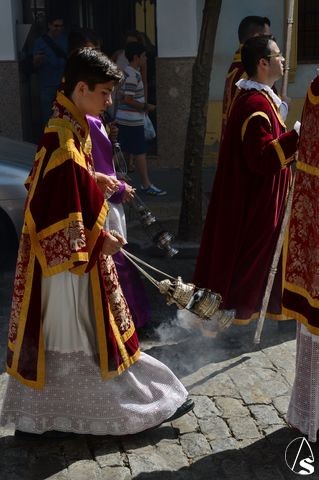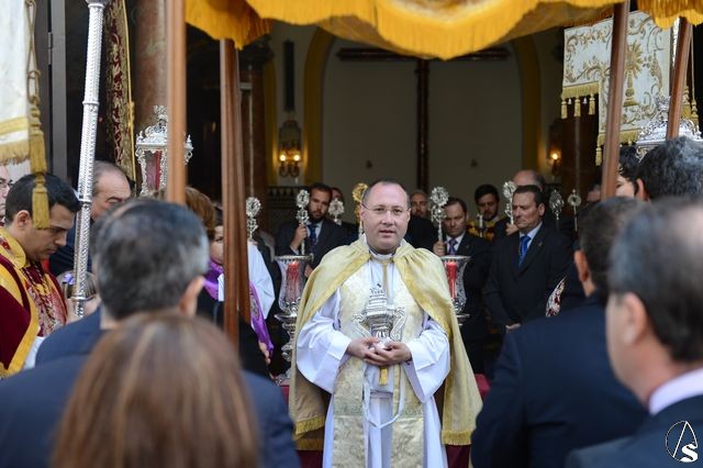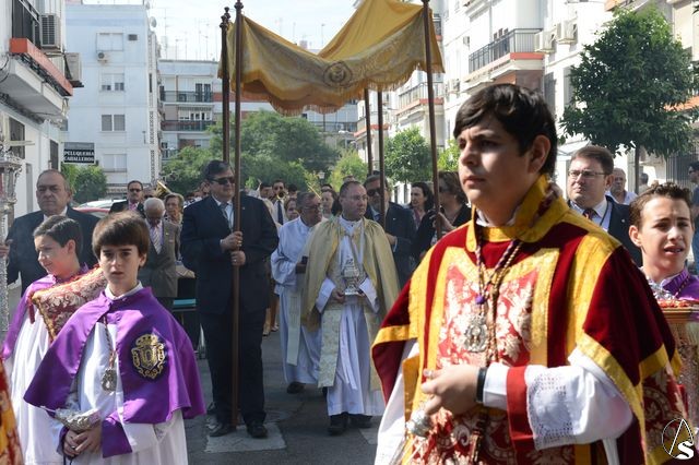 La procesión comenzó a las 10 horas y portando el Santísimo, bajo palio, estaba el párroco y director espiritual, José Antonio Jiménez Hidalgo. Portando varales del palio estaban el hermano mayor de la O, el hermano mayor de la Virgen del Carmen del Puente de Triana, el de la hermandad del Cachorro y la delegada de Sacramentales, Milagros Ciudad. También figuraban en el cortejo los estandartes de las hermandades antes mencionadas.