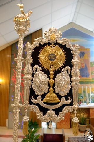 También, en el transcurso de la eucaristía, se bendijo el nuevo guión sacramental, obra de Manuel de los Rios y donado por un grupo de hermanas de la corporación letífica.