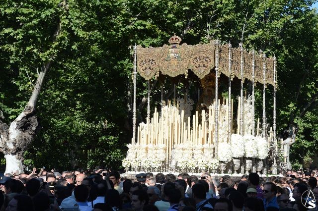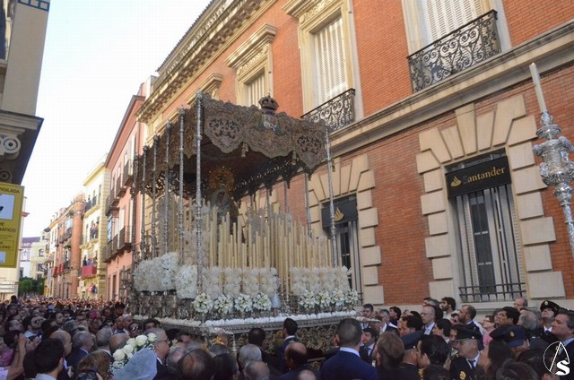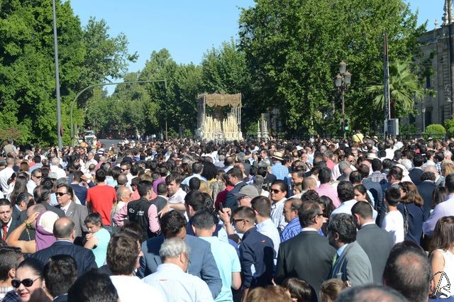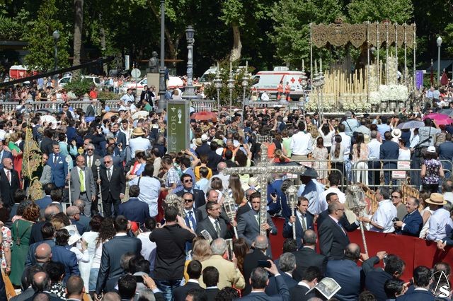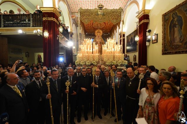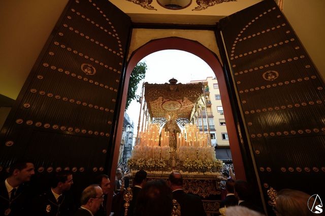 Minutos antes de las 19 horas comenzó a salir de nuevo el cortejo, ya formado por los hermanos que habían sacado su papeleta de sitio, con todas las insignias que partieron a la ida. La Macarena salió del Rectorado de la Universidad a los sones de la marcha “Coronación de la Macarena ”, para dirigirse desde la calle San Fernando a la Ronda Histórica y, desde allí, visitar a todas las hermandades que se encuentre a su paso.