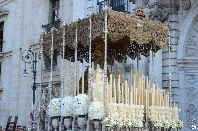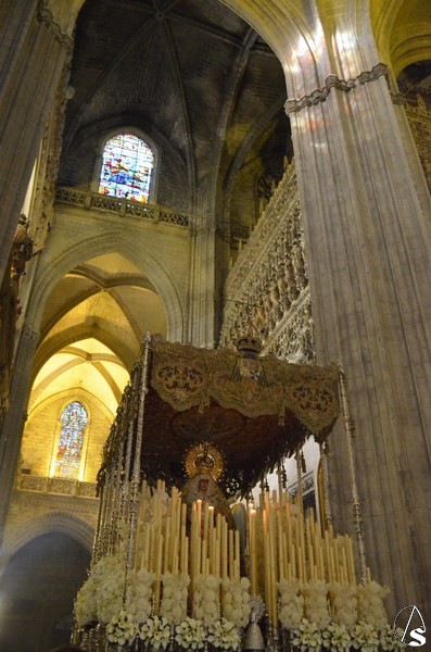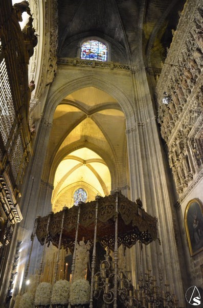 A partir de aquí, retomó la trasera del paso la banda de música del Carmen de Salteras, como desde la salida de la Catedral lo venía haciendo.