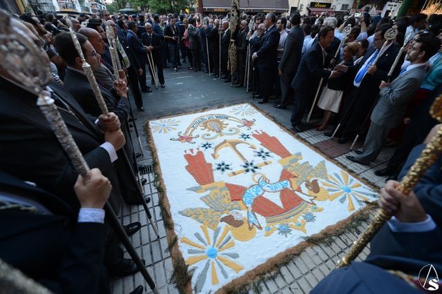 La Virgen pasó por la puerta del Consejo de Cofradías, sita en la calle San Gregorio, donde una representación de esta institución le hizo una ofrenda floral.