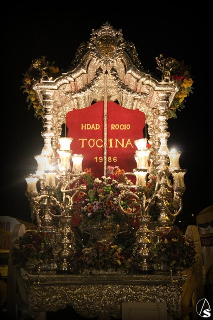 Arte Sacro. El pasado lunes 2 de Junio la Hermandad de Ntra. Sra. del Rocío de Tocina inició su camino hasta las plantas de la Blanca Paloma. La primera parada la realizaron en el polígono industrial "El Cáñamo" en La Rinconada. Aquí unas fotografías de la primera noche del camino.