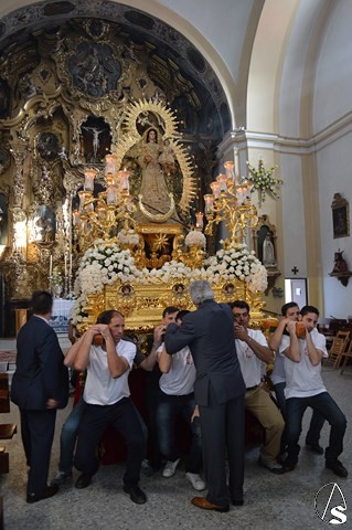 Mientras se daban los últimos retoques y el pueblo se congregaba en las inmediaciones del Templo, la Santísima Virgen de la Estrella, imagen anónima de finales del siglo XVI, esperaba en el interior del Templo. Pasadas las nueve de la mañana las puertas de la Parroquia se abrían para que apareciera la Estrella más radiante de esa mañana. La Santísima Virgen sin corona en sus sienes abandonaba su Templo entre el fervor y la devoción de todo un pueblo.