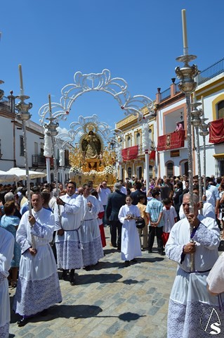 Una vez finalizaba el solemne Pontifical se iniciaba la procesión gloriosa por las calles de Chucena. El Cortejo estuvo compuesto por numerosas Hermandades venidas de los distintos rincones de la Diócesis de Huelva, o de pueblos cercanos, así como Hermandades con advocación de Estrella de distintos lugares como Triana, Coria del Río, el Garrobo o Toledo. Minutos después de las doce de la mañana los costaleros de la Virgen de la Estrella portaban a su Patrona ya coronada para iniciar el glorioso recorrido por un pueblo que se engalanó con arcos y cadenetas de flores para honrar a su Patrona. Hermandades como la Soledad de Huévar del Aljarafe o el Rosario de Carrión de los Céspedes cedieron sus arcos para la Patrona chucenera.