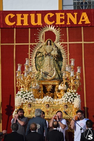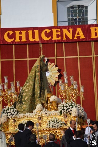 Bajo un inmenso sol, que en ese día su brillo era menor al de la Virgen de la Estrella, la procesión se acercaba a la Plaza de Andalucía donde la Corporación Municipal la esperaba en las puertas del Ayuntamiento para recibirla con una lluvia de pétalos. La Virgen de la Estrella fue nombrada Patrona canónica por el Papa Juan Pablo II el 18 de septiembre de 1980, siendo nombrada Alcaldesa Perpetua de la localidad, el 25 de abril de 2004, por ello, a sus plantas, la Santísima Virgen porta el Bastón de Mando de Chucena.