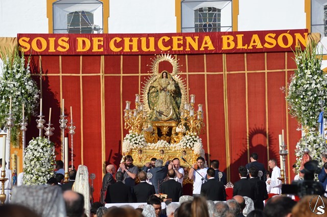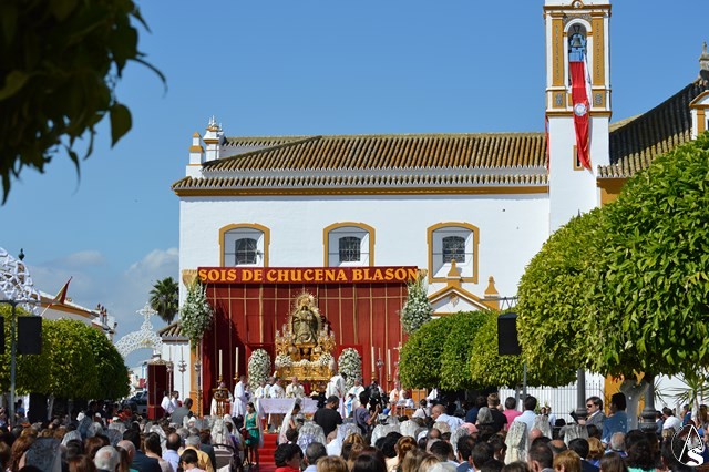 Desde que amaneció el cielo de Chucena se llenaba de estallidos de cohetes anunciando el momento tan esperado por todo un pueblo. Chucena despertó más bella que nunca, con calles engalanadas y una plaza, que días antes era conocida como Plaza de la Iglesia y que desde el pasado domingo será la Plaza de la Coronación, amanecía prepara para cobijar a más de 2000 personas para la celebración del Pontifical en un bello altar situado a los pies del Templo Parroquial, consagrado a la Santísima Virgen de la Estrella.