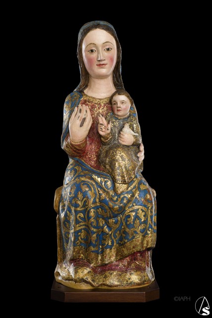 Por último, indicar que la investigación ha permitido comprobar que se conservan, al menos, tres policromías consecutivas. La hoy visible (1894), y la inmediatamente inferior, guardan el mismo cromatismo. En ambas, las vestimentas, decoradas mediante la técnica del estofado, coinciden en el color: manto azul y túnica roja en la Virgen, y gris en el Niño. Por su parte, la policromía medieval tiene un cromatismo diferente: el manto de la Virgen es rojo y la túnica azul; ambos están decorados con un pequeño dibujo.