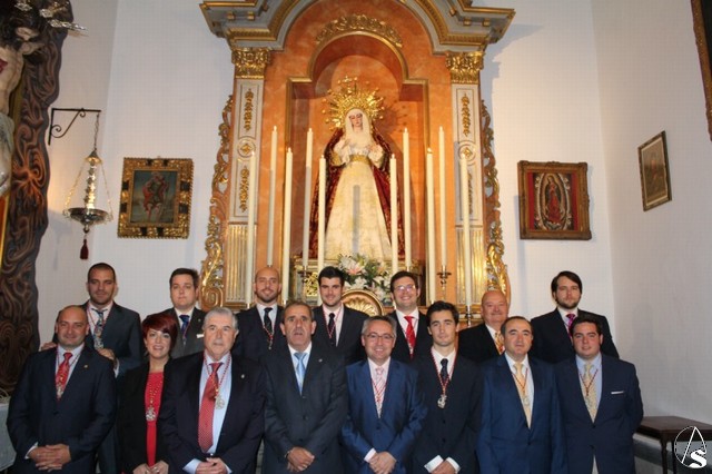 Al término de la misa el nuevo hermano mayor dirigió unas palabras a los presentes en las que agradecía a Don Enrique Luis Guerrero (director espiritual y párroco de San Juan Bautista), la inestimable ayuda que siempre le había prestado hasta llegar al cargo, también tuvo palabras de orgullo y agradecimiento a todos los miembros de la nueva junta de gobierno por asumir su responsabilidad con ilusión y ganas de trabajar por su Hermandad, y emocionado recordó a su hermano Isaac, antiguo costalero de la Virgen de los Dolores fallecido un año atrás, destacando lo orgulloso que ahora se sentiría de él como hermano mayor.