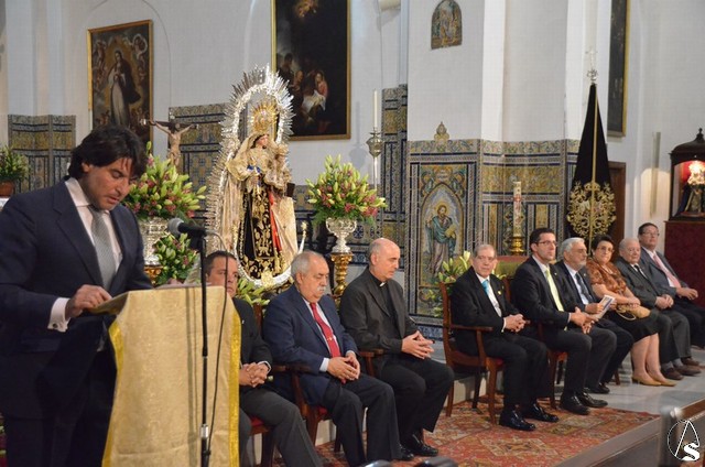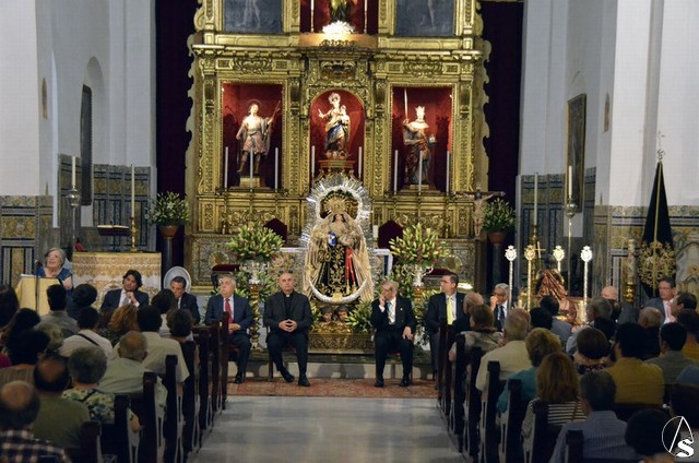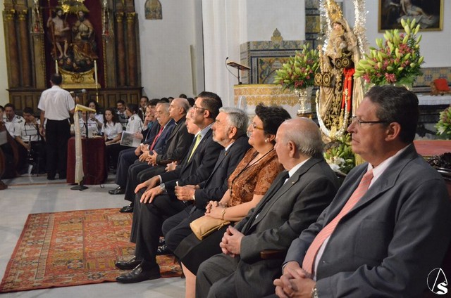 El acto fue presidido por Manuel Cotrino, párroco de San Román y Santa Catalina, así como por Manuel Guijarro, hermano mayor de la corporación carmelitana, acompañándoles en la presidencia, entre otros, Tomás Vega como tesorero del Consejo General de Hermandades y Cofradías, Miguel Bazaga como concejal de la oposición del Ayuntamiento, Rafael Rivas como director de área de Fiestas Mayores, y Miguel Cruz como adjunto a la presidencia del Ateneo.