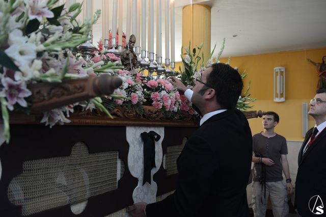 El capataz Joaquín Rivas, auxiliar de Antonio Santiago, y gran cofrade de San Bernardo, dio una levantá del paso durante el recorrido.