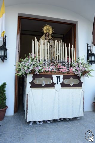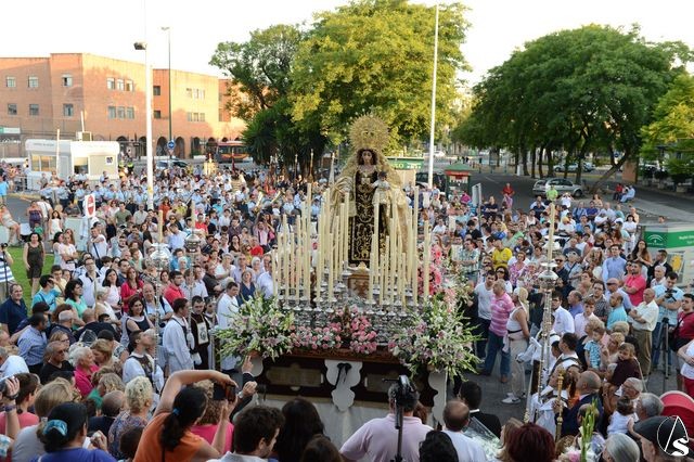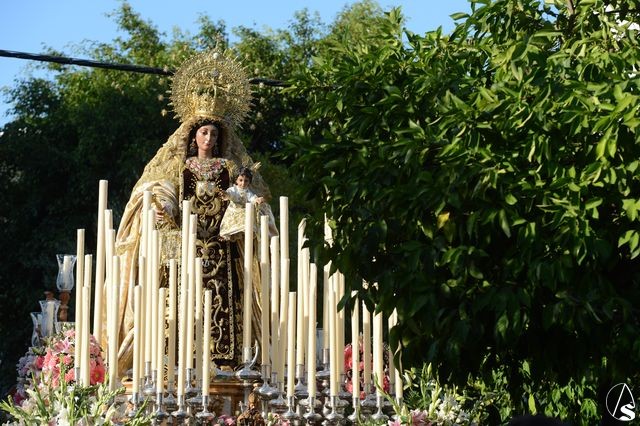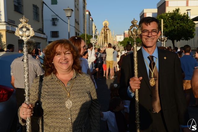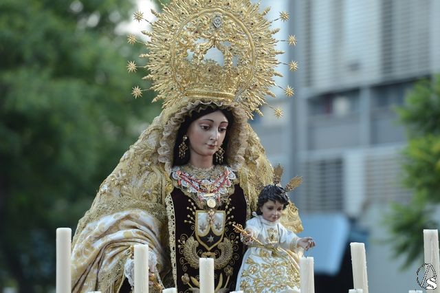 Numerosas representaciones de hermandades estuvieron en el cortejo, como las de la Anunciación de Juan XXIII, Corpus Christi, Candelaria Madre de Dios, Araceli, Carmen de San Gil, San José Obrero, Rosario de San Julián y del Barrio León, junto con la delegada de glorias, Esther Ortego.
