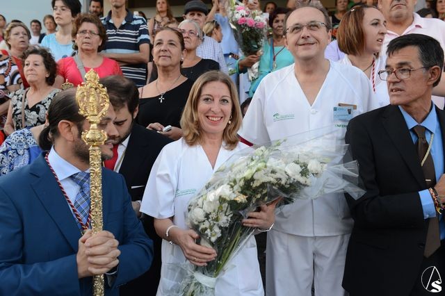En este punto del recorrido, se acercó a la Stma. Virgen hasta la puerta de entrada del Hospital, donde personal sanitario esperaban al cortejo e, incluso, algún que otro paciente se asomaba por la ventana de la habitación para poder ver a la que es Reina del Carmelo.
