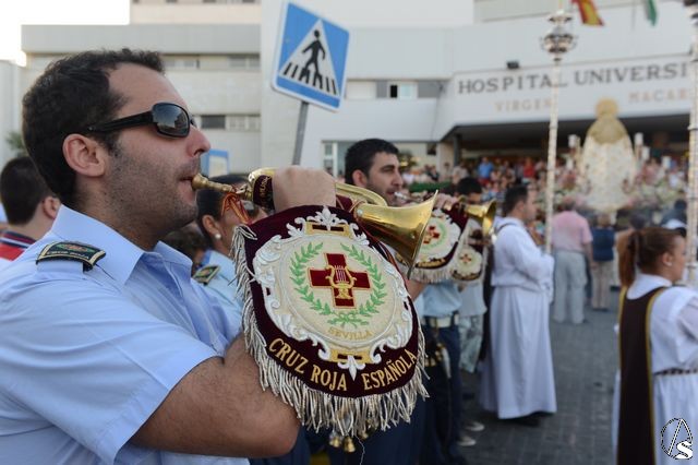 Daniel García Acevedo. La Virgen del Carmen, de la parroquia de San Leandro, volvió a procesionar, un año más, ayer sábado 12 de junio, por su feligresía y, sobre todo, la visita al Hospital Virgen Macarena.