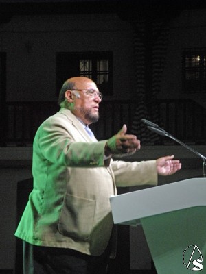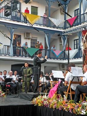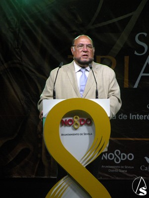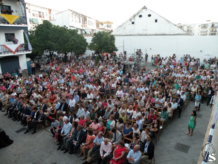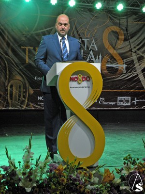 Pasada las 22 horas de la noche el pregonero Manuel Melado Prado, poeta, letrista, escritor y presentador de radio y tv, subió al estrado en el abarrotado y engalanado patio de vecinos de Triana, no sin antes ser presentado por el Alcalde de Triana Francisco Pérez Guerrero “Curro Pérez”