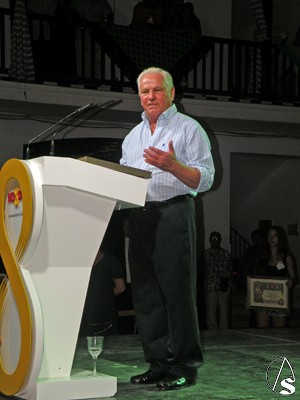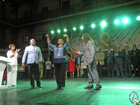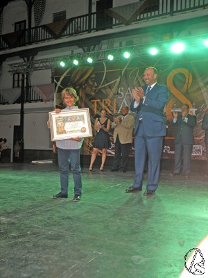 Una vez terminado el pregón con grandes aplausos, la comisión organizadora galardonó a los trianeros de honor, trianeros del año, e instituciones honorificas, que fueron obsequiados por las autoridades de la capital Hispalense.