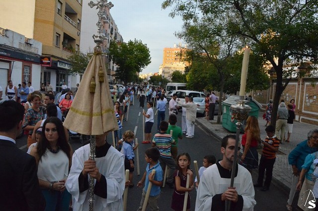 Arte Sacro. El distrito Macarena Norte se llena de alegría en el mes de septiembre con la salida de la Virgen de Gloria que tan bien acogió la comunidad religiosa y el colegio La Salle-Felipe Benito.
