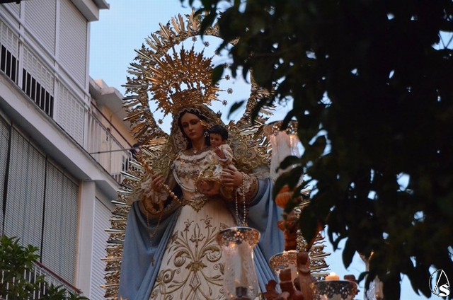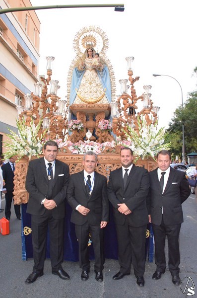 Alumnos, profesores, padres de alumnos y muchos fieles y devotos se dan cita ante esta bella imagen que gubiara Miguel Bejarano para regocijo del entorno de la calle Riscos, su antigua Capilla. El paso de la Virgen estrenaba relicario con una reliquia de San Juan de La Salle.